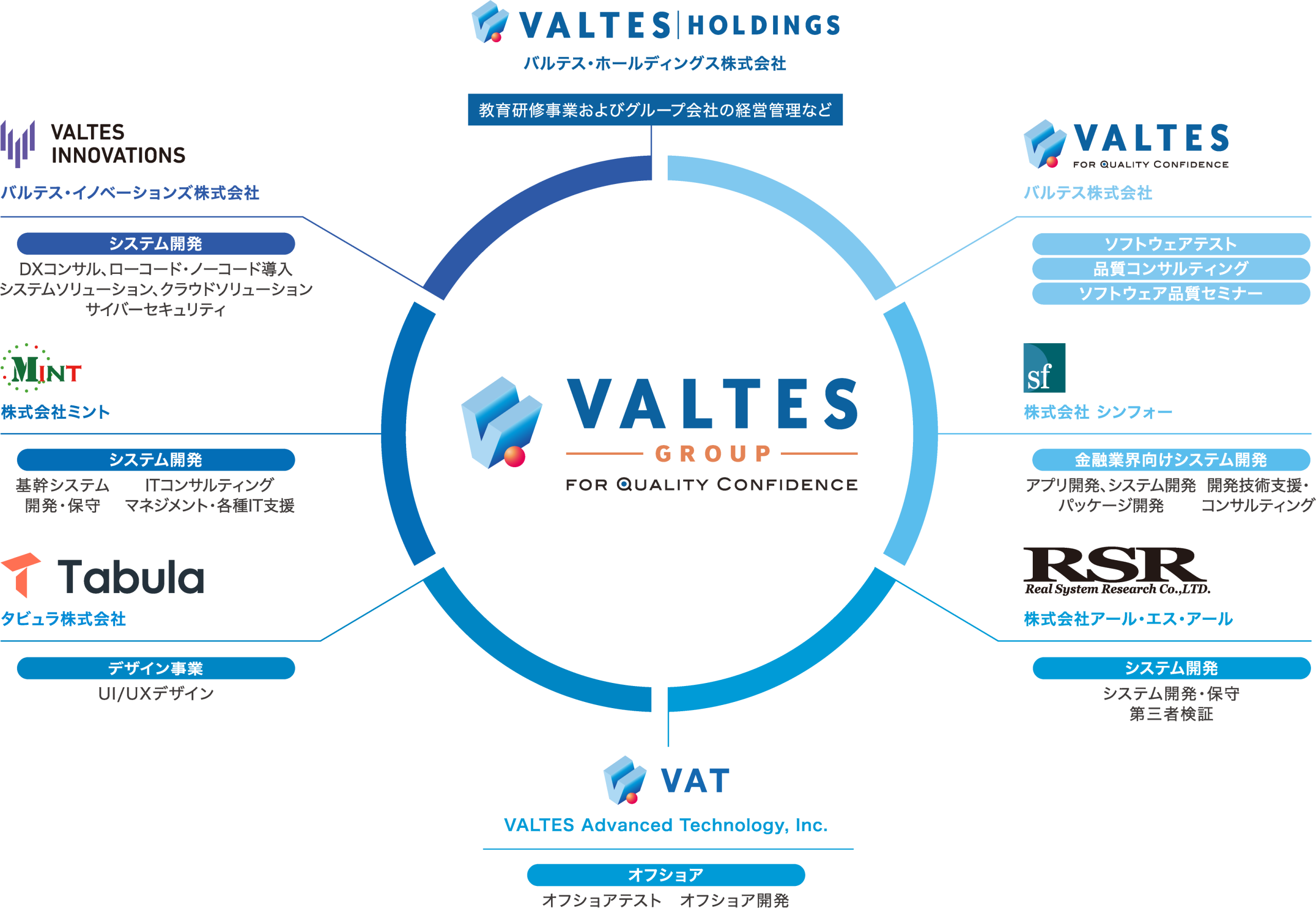 当社グループは2004年の創業以降、⽇本のソフトウェアテスト業界を牽引してきました。さらに、ソフトウェアテストで培った「品質」に関するさまざまなナレッジを活かし、Web・モバイルアプリ開発、セキュリティサービス、オフショアテスト・開発などのサービスを次々と開始。高品質なソフトウェアの効率的な開発を支援する多彩な事業を展開しています。これからも「品質」を軸として、新たな事業・サービスを創出し、日本のモノづくりとデジタル改革に貢献していきます。