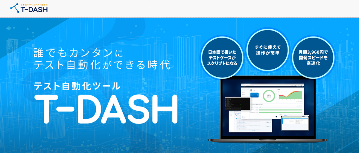 T-DASHは日本語で書いたテストケースが、そのままスクリプトとして自動テストを実行できます。自動化の導入を妨げる要素として第一に挙げられるのがスクリプトメンテナンスです。T-DASHではスクリプトを従来の開発言語ではなく、T-DASHで設定できる日本語のテストケースをそのまま実行することができるため、今まであきらめていた自動化の導入を促進することができます。
