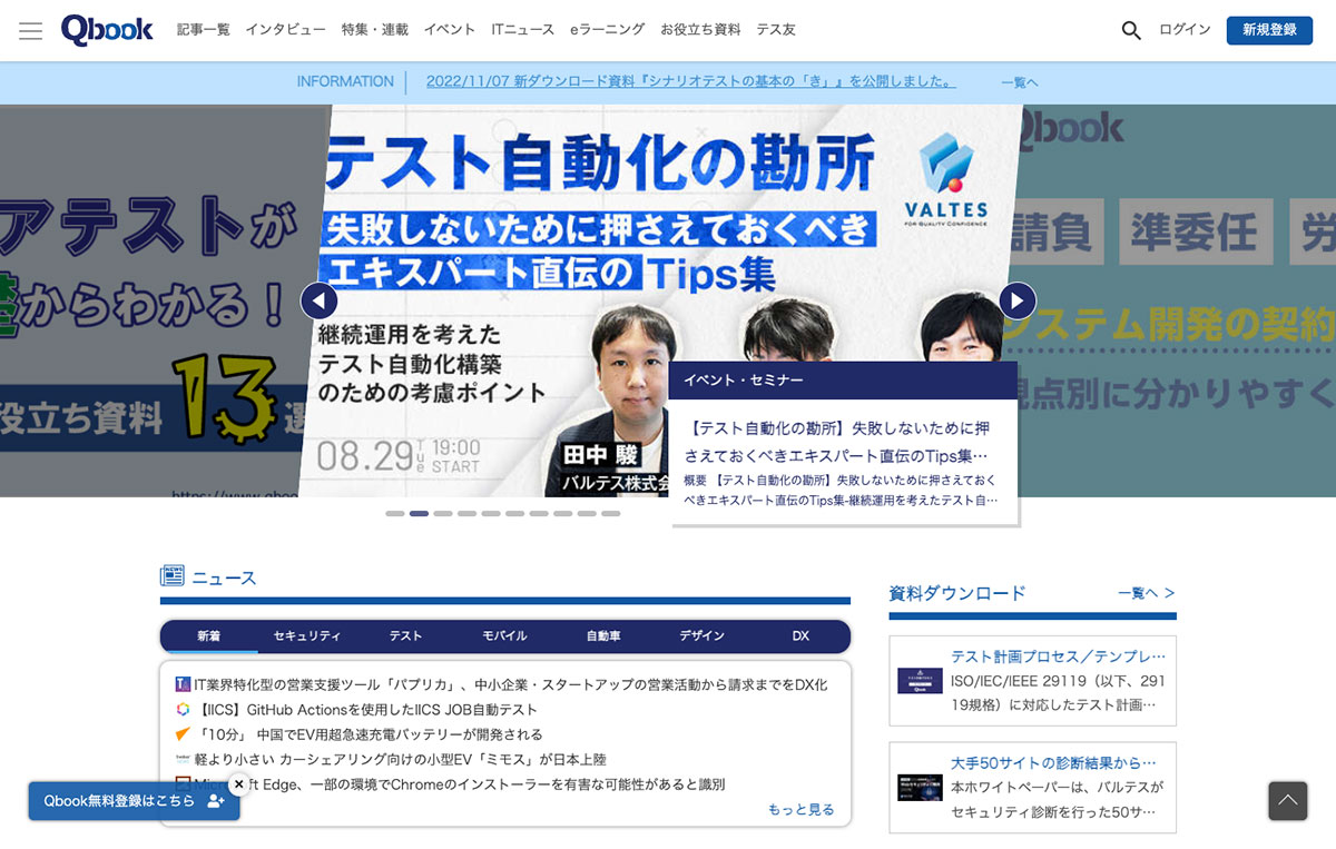 さらに、ソフトウェア品質向上のポータルサイト「Qbook」において、ソフトウェアの品質やテストに関する豊富な記事や学習コンテンツを公開。社会全体のソフトウェア品質に関する知識・スキル向上に貢献しています。